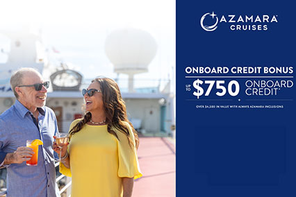 Change The Way You Sea: Azamara sailings will take you on an immersive journey of discovery where time becomes your ultimate travel companion. Venture deeper into parts unknown, stay longer in port and embark on journeys through which you can truly lose yourselfReceive up to US$750 onboard credit.