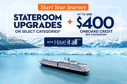 Holland America offers timeless elegance and immersive travel experiences that blend classic cruising traditions with modern comfort. Sailing to all seven continents, Holland America invites you to explore the world with sophistication, authenticity, and a sense of enduring adventure. Stateroom Upgrades and up to US$400 onboard credit.